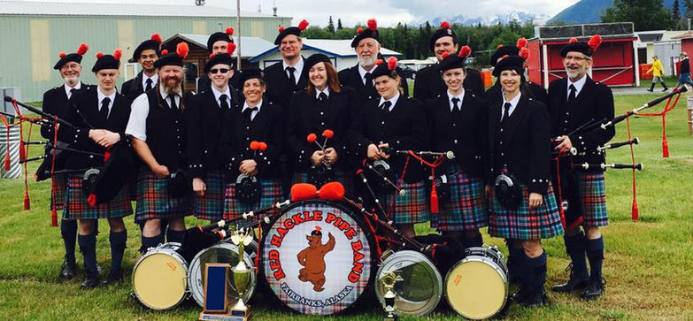 In June 1974, the young band competed for the first time at the Alaska Scottish Highland Games in Palmer with three pipers—Bob White, Eric Rice, and Paige McLaughlin—and one drummer, Ian White. That year, the Fairbanks Red Hackles became Alaska State Champions and held the title uninterrupted through 1977.